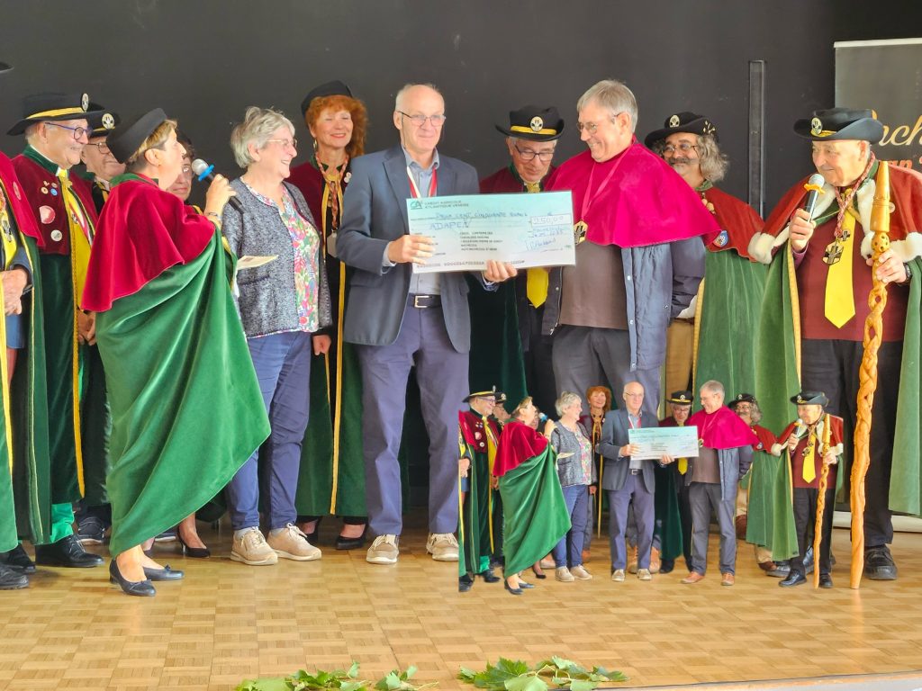 La confrérie des chevaliers Raisvins a célébré la fête du vin nouveau et du jus de raisin au Moutiers-en-Retz. Un évènement soulignant « l’importance des échanges et la valorisation des produits locaux », explique Jacky Berthaume, Président de la confrérie. Lors de cette journée festive, Philippe Renaudineau, ancien maraîcher, bien connu dans la région Machecoulaise, a été intronisé. Présent dans plusieurs associations, dont Handi’Cool et Tankanto, Philippe Renaudineau a reçu les insignes de la confrérie en tant que trésorier de l’Adapeila. Un chèque de soutien de 250 € lui a été remis, qu’il a immédiatement transmis à Joseph Brisson, trésorier départemental de l’association. Cet évènement témoigne de l’engagement de la confrérie envers la valorisation des acteurs locaux et du lien social.